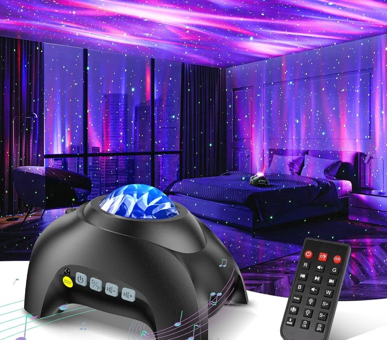 Enhancing the overall aesthetic, consider using additional decor accessories such as fairy lights or textiles in complementary colors to the projector's projections. This will unify the ambiance while allowing flexibility in how the Northern Galaxy Light can elevate the room's visual appeal.